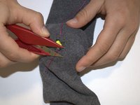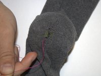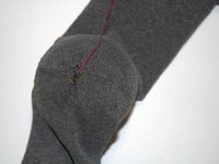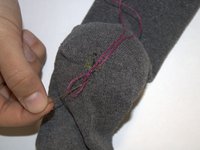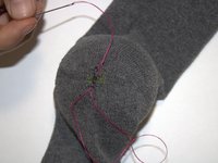 Note, this repair works best for small holes (up to one inch in diameter). You may use this technique for larger holes (over one inch in diameter), but this technique can affect the sock's fit the larger the hole is.