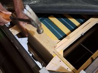 Using a hammer, put a piece of wood on top of the unleveled wood, allowing you to have a larger surface to hammer on as you try to align the unlevelled wood back into its position.