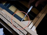 Take another screw then screw it into where it goes through the new piece of wood first, then into the other piece of wood that is glued other than than the recently unleveled piece of wood.