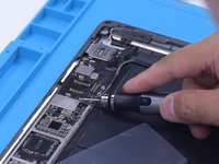 Remove the screw on the motherboard and insert a Pry Piece to disconnect the battery.