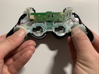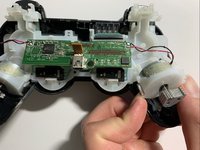 Remove the white body piece from the controller by pushing the unhooked left and right rumble motors in an upward direction.