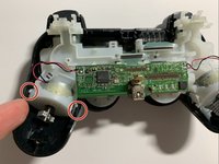Use a Phillips #1 screwdriver to remove the single 7.2 mm screw, which secures the white body piece inside the controller.
