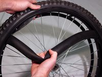 Push the rest of the tube under the tire so it sits evenly on the rim.