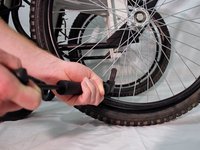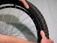 Holding one tire lever in place, slide the other lever around the rest of the wheel until the side of the tire is completely free of the rim.