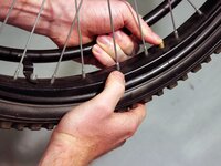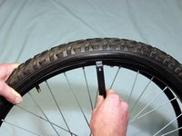 Take another tire lever and repeat step 4 roughly 2.5 inches away from where you are holding the other tire lever.