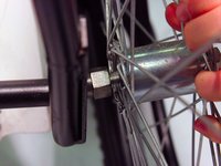 Put the wheel back on the axle and screw in the bolt using the multitool or 19mm socket and 19mm crescent wrench.