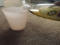 Use a one-to-one (1:1) ratio of dishwashing liquid and water to clean the pee stains on the carpet.