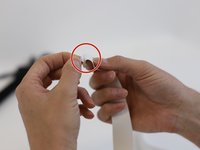 Remove the sticker back (red circle) of the tip and and begin to wrap the tape around the grip.