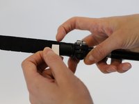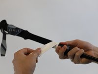 Open the grip tape and look for the diagonal tip of the tape. Set aside the sticker wrap (green arrow). This will be useful for the final part of the repair.