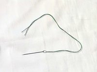 Thread your needle by pulling one end of the thread through the eyes of the needle.