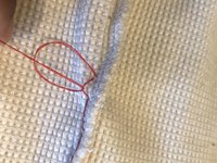 Begin to tie off the knot by looping the needle and thread over and under the bottom of the last stitch you made.