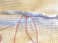 Thread the need so that the needle falls exactly in the middle of the thread.