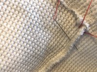 Turn the clothing inside out and insert the needle at the end of the rip.