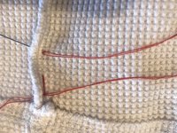 Now, push the needle back through the other side a space away from the initial piercing spot.