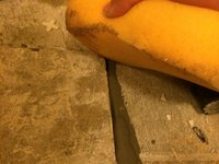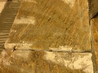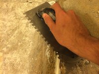 Spread the mortar on the floor in a square no larger than 3'x3' utilizing the thin, flat side of the trowel.