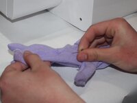 Stretch the mitten to test the repair.