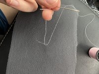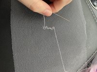 • Put the needle through one side of the tear, and thread it to the other side, making a line of thread through the tear. This will be your first stitch.