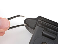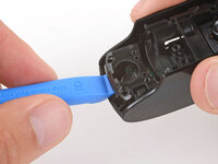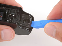 Use an opening tool to gently pry up and unclip the left, right, and bottom edges of the plastic inner housing.