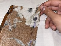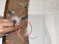Use pin head needles to connect the fabric to the ripped area of the pants.