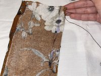 Push the needle up through the underside of the fabric. Pull the needle up until there is some thread on the other side. Repeat until you stitch all the way down edge of the fabric.