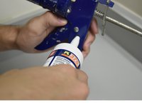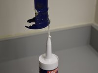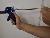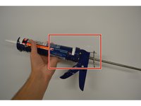 Place the tip of the new bottle of caulk into the hole by the trigger.