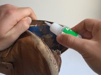 Apply a thin bead of glue along the top edge of the sole and across the interior surface of the sole.