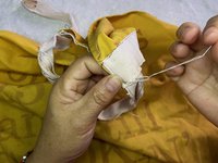 Once inserted, make a knot so the thread can't move. Pull the thread as far as possible but still able to create a knot.