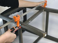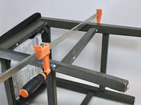 Put the legs holding the stretcher between the bar clamp's jaws.