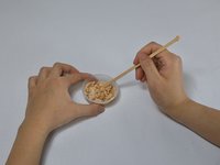 Using the disposable stirrer and bowl, mix a 2:1 ratio of sawdust and wood glue.