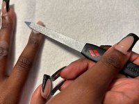 Use a metal pusher to carefully remove the acrylic from the nails. Start at the bottom of the nail and move up.