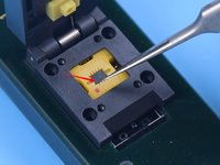 Attach the chip to the specialized seat of T203. Align pin 1 of the chip with pin 1 of the seat.