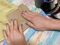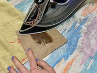 Take your brown paper bag and fold it over the affected area, being sure to cover both sides of the waxy clothing.
