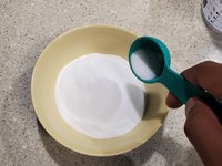 • Mix the baking soda, salt, and peroxide combination with a small utensil until the ingredients have been thoroughly combined.