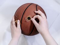 For the acoustic test, inflate the basketball, hold the ball close to your ear, rotate the ball, and listen for any quiet whistling.