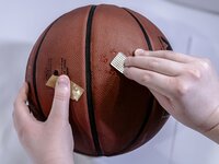 Locate the leak on the basketball's surface by using one of two methods: the water test or the acoustic test.