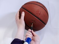 Deflate the ball by 20% of the air it currently contains by placing the inflation needle from the ball pump into the inflation hole of the ball until air is released.
