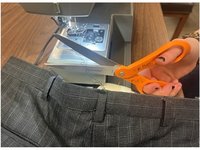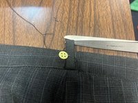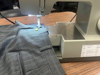 This is a guide on how repair or reattach a belt loop on a pair of dress pants. For this repair you will need a sewing machine, thread, scissors, and sewing pins (optional). When sewing, make sure you are not wearing loose clothing and tie back hair that could get caught in the machine. This is a useful repair because dress pants can be expensive to replace if a piece goes missing or is damaged, and this repair can make it less likely for you to need to replace your dress pants.