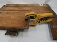 • Attach clamps to the wood panels where the glue was applied. Place one clamp on each end.