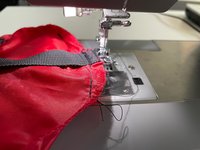 Prepare your sewing machine and the area around it. Position the broken seam underneath the foot and pull the foot down.