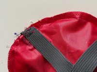 Check the other (unbroken) webbing seams for the correct positioning on top or between the seam fabrics. This is unique to each product, so take care to match what you have and not copying the example shown.