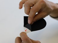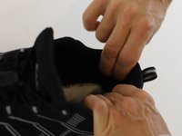 Place the patch onto the heel. Start from the bottom and press it firm against the lining.
