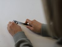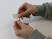 Preparation: We're going to create a plastic washer to keep the strap in place, and for this it's useful to have a guide to trace around. We're using a bottle lid, but a coin or anything larger than the hole will work too.