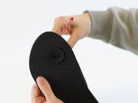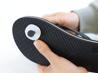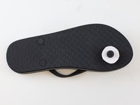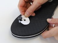 Re-insert the strap through the sole, as it should be for normal wearing. Then, pull the strap a bit further through from the bottom to give space for installing the washer.