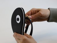 Carefully stretch the foam disc over the strap "stopper"