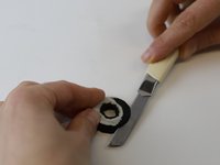 Preparation: For the second part of this repair, we're going to carefully cut the bottom layer of foam away, and insert the washer into the hole. Then we will glue the foam piece back on top.