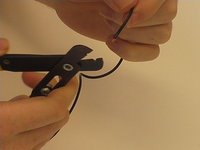 Clamp the wire strippers around the wire where the mark is. Press tight enough to cut through the insulation but not the wire. Pull (Strip) the insulation from the mark to the cut end.