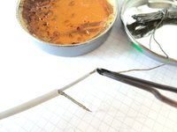 Using a soldering iron/gun, apply solder to all 4 ends of the wires.