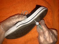 Place sneaker on small towel in a location that is out of the way so when drying it will not be touched. Find the exposed hole in the sneaker.