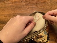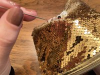 Gather the missing sequin, a needle, and thread. Put the thread through the needle.