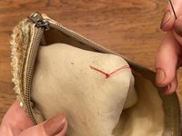 Put the needle through the back of the last stitch without puncturing the fabric.